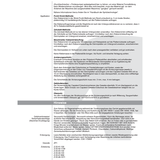 Pi BaustoffhandelIn stockVerwendungszweck Klebemörtel, ausschließlich zum Kleben von Dämmplatten für die Capatect-WDV-Systeme A und B. Eigenschaften Brandverhalten „nichtb...